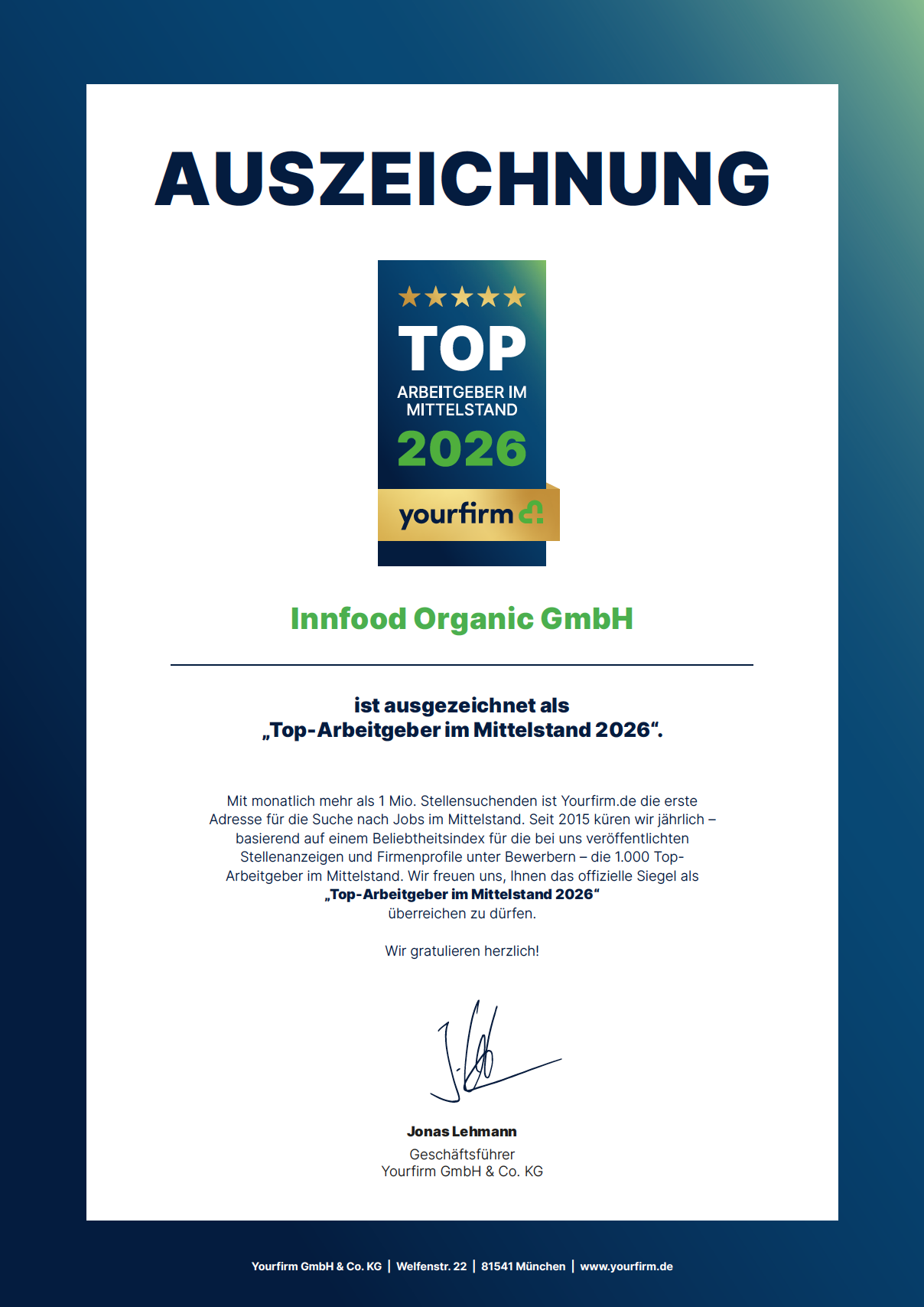 Willst du die InnFood Organic GmbH kennen lernen und mal ein bisschen in die Berufswelt schnuppern?