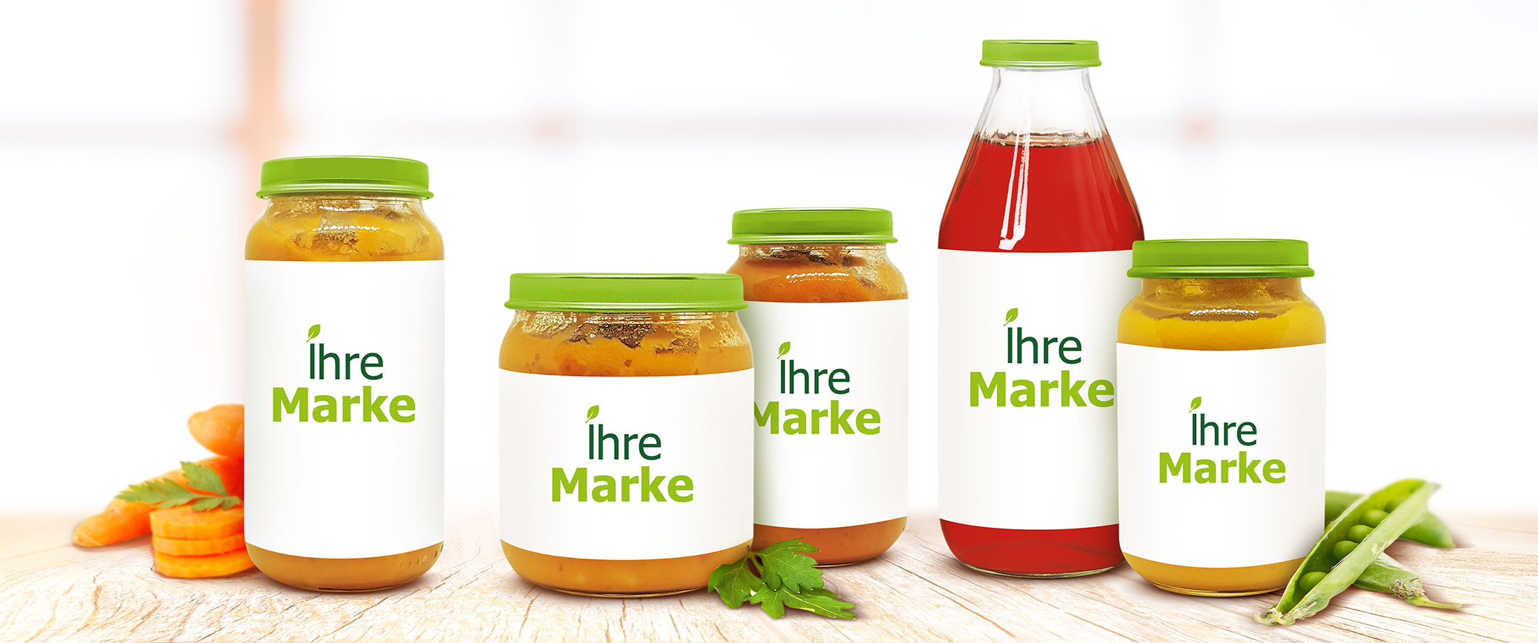 - Gläser: 120g, 125g, 180g, 190g, 200g, 220g, 250g (breit und schmal), 345g schmal, 350g breit